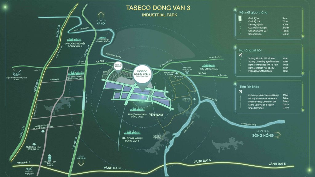 Khu công nghiệp Taseco Đồng Văn 3 được định hướng là KCN đa ngành nghề với quy mô rộng lớn và hạ tầng đồng bộ sẽ là điểm đến lý tưởng cho các doanh nghiệp đang tìm kiếm sự phát triển bền vững và lợi nhuận cao.