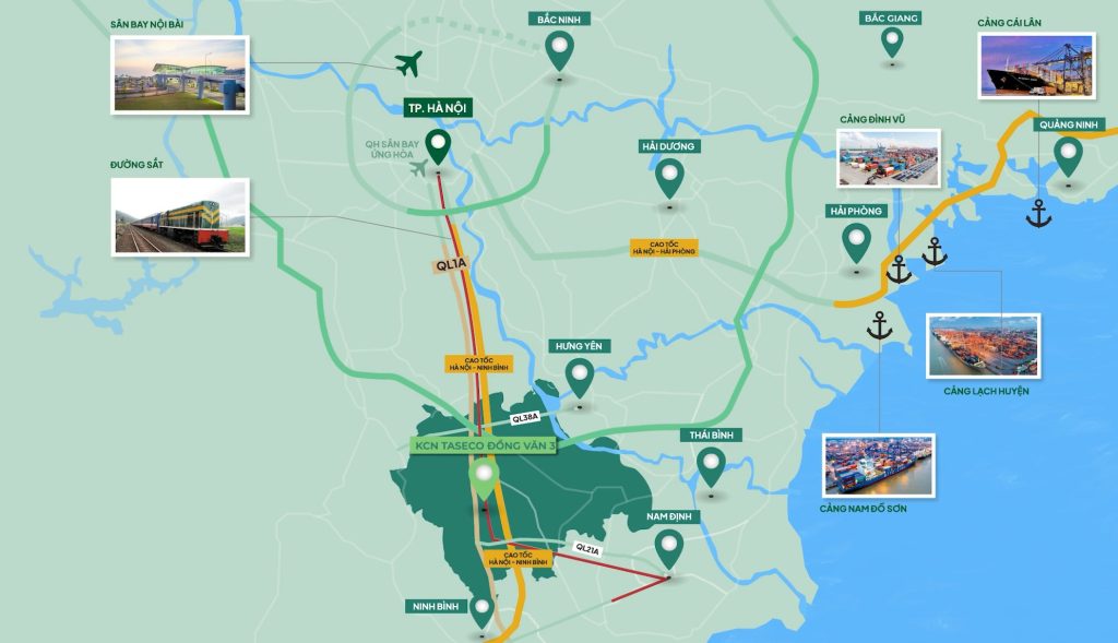 Ngoài ra, với khoảng cách không xa đến các cảng biển lớn như Hải Phòng và Cái Lân, cùng với sân bay quốc tế Nội Bài, việc xuất nhập khẩu hàng hóa và di chuyển của các chuyên gia trở nên rất thuận tiện.